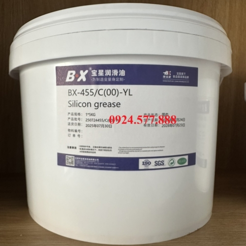 Mỡ Silicone BX-455/C(00)-YL, được làm đặc bằng chất làm đặc vô cơ và bổ sung thêm phụ gia chống gỉ, chống ăn mòn và chất cải thiện kết cấu, v.v. Tuân thủ các tiêu chuẩn an toàn quốc tế như FDA-H1, ASTM-F963, 16P, ROHSm....
